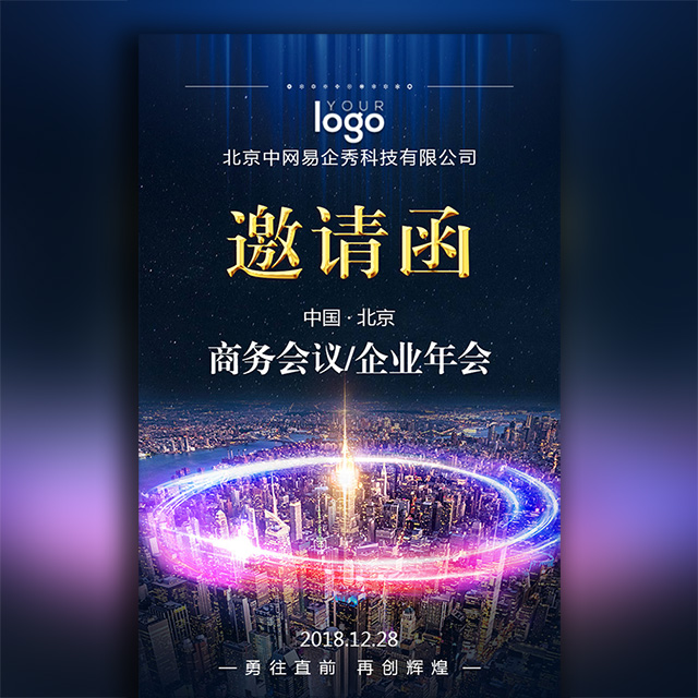 快秀|炫酷版城市炫彩光束快闪企业商务会议年会展会邀请函