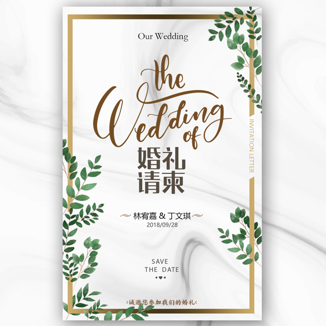 高端森系轻奢婚礼邀请函婚礼请帖结婚请柬