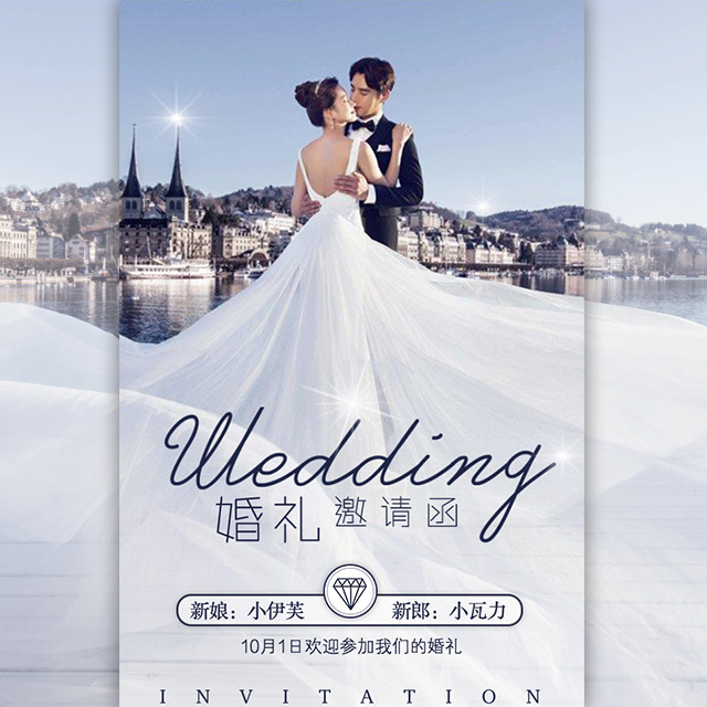 快闪旅拍高端时尚婚礼邀请函欧式轻奢星光结婚请柬