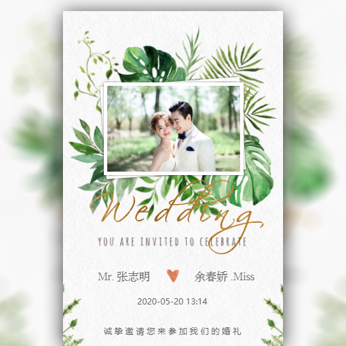 韩式清新森系唯美婚礼邀请函时尚浪漫结婚请帖