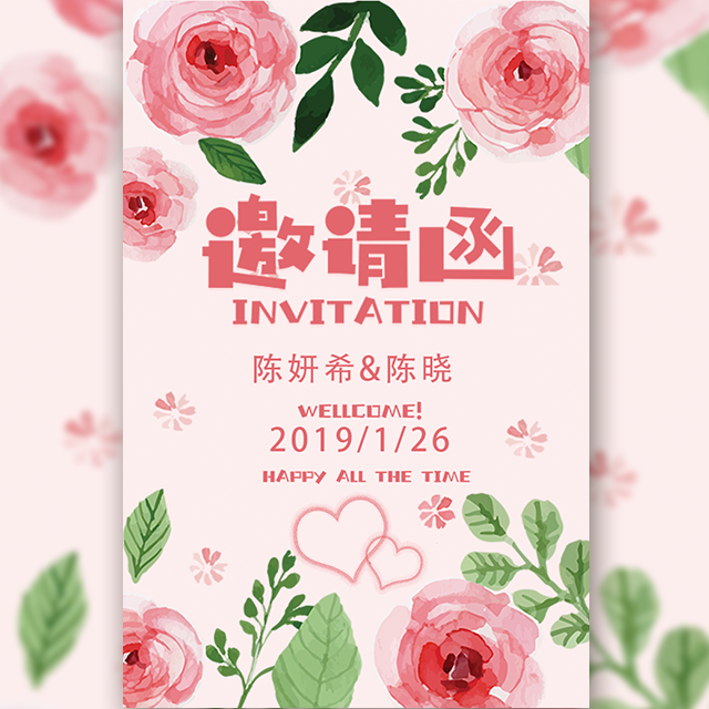 快秀|简约时尚粉色浪漫结婚请柬婚礼邀请函